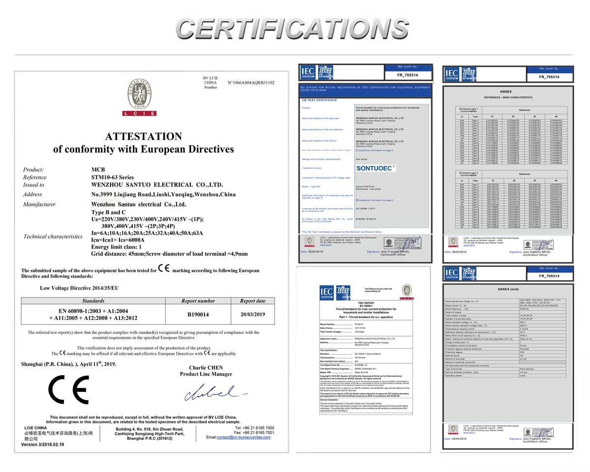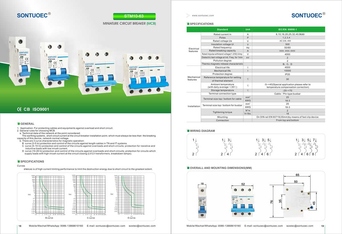 SONTUOEC yra vienas iš Kinijos tiekėjų/gamintojų, besispecializuojančių įvairių smulkių elektros prietaisų gamyboje. STM10-63 serijos didelio trūkumo miniatiūrinis grandinės pertraukiklis pasižymi pažangia konstrukcija, patikimu veikimu, aukšta pertraukimo galia, elegantiška išvaizda, o jo korpusas ir dalys pagaminti iš medžiagos, kuri yra atspari smūgiams, stipriai sulaiko liepsną. Jis tinka 50 arba 60 dažnių, Ue 400 V ir mažesnio, Ui 63A ir mažesnio dažnio maitinimui. Atitinka IEC60898.1 ir GB10963.1 standartus.